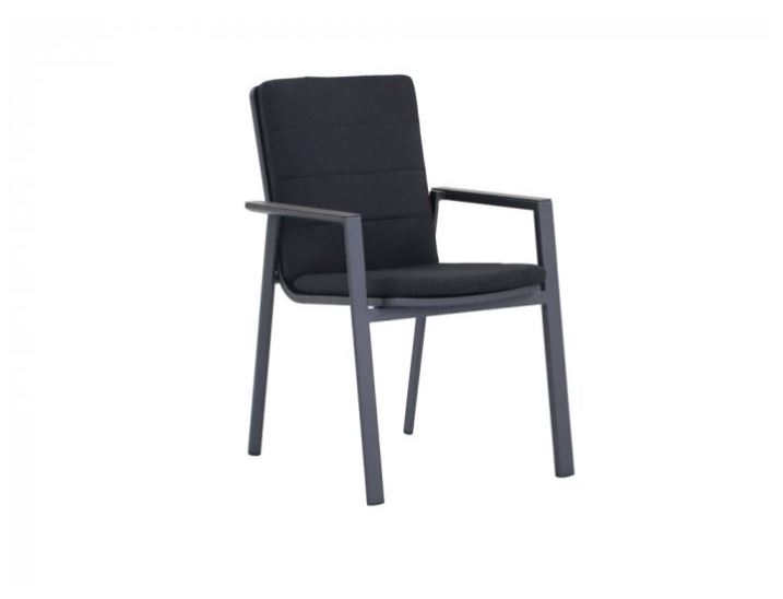 Das Gestell des Sessel Alex von Zebra besteht aus pulverbeschichtetem Aluminium in graphite. Das Gestell der Sessel wirkt leicht. Die Armlehnen sind mit einem Einsatz aus Teakholz versehen, welcher sanft in die Rahmung der Armlehnen übergeht. Durch das Holz wird auch bei hohen Temperaturen eine sichere Armablage ermöglicht. Die Sitz- und Rückenfläche bestehen aus hochwertigem Textil-Gewebe in ebony grey. Durch die Stapelfunktion kann der Gartenstuhl Alex von Zebra platzsparend verstaut werden.